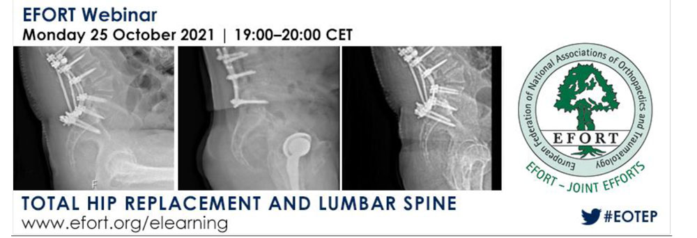 This EFORT Webinar on “Total Hip Replacement and Lumbar Spine” will focus on the relationship between the total hip replacement and the spinopelvic parameters. The objectives of this Webinar are: